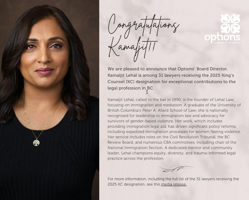 Beyond her professional excellence, Kamaljit has been a loyal and passionate supporter of Options for decades. As of 2026, she has served on our Board of Directors for an astounding 30 years.