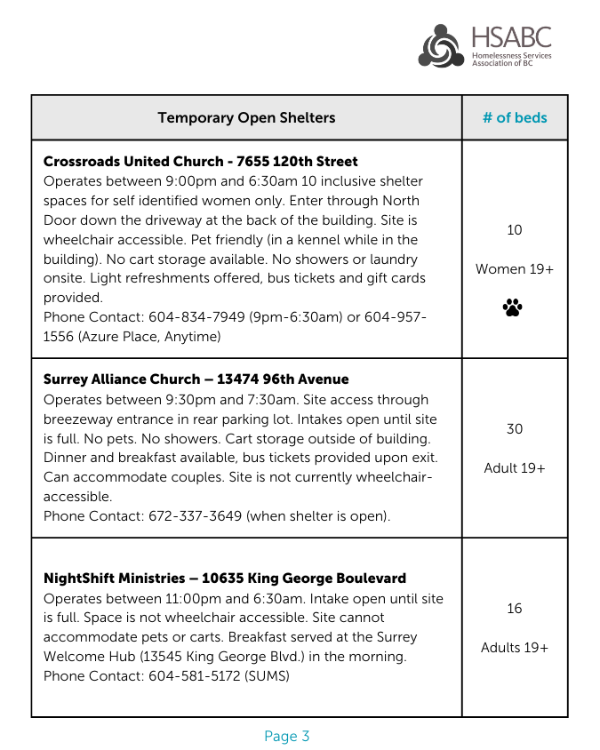 Extreme Weather Response shelter spaces will open in Delta and Surrey-White Rock:
